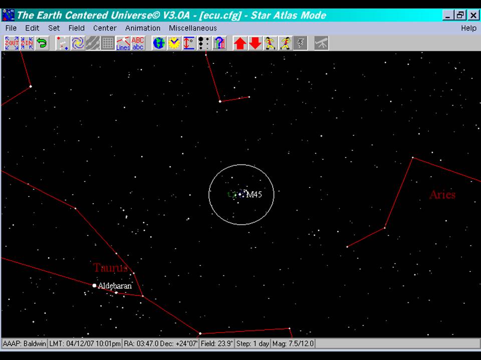 M45 is located in the late fall constellation of Taurus, 'The Bull'.