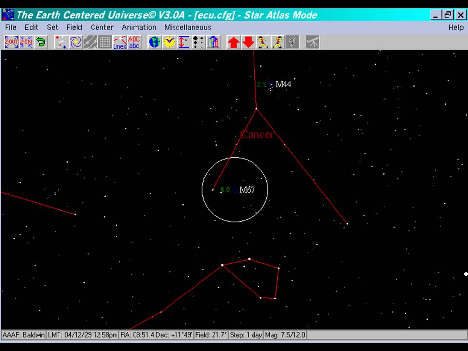 M67 is located in the early spring constellation of Cancer, 'The Crab'.